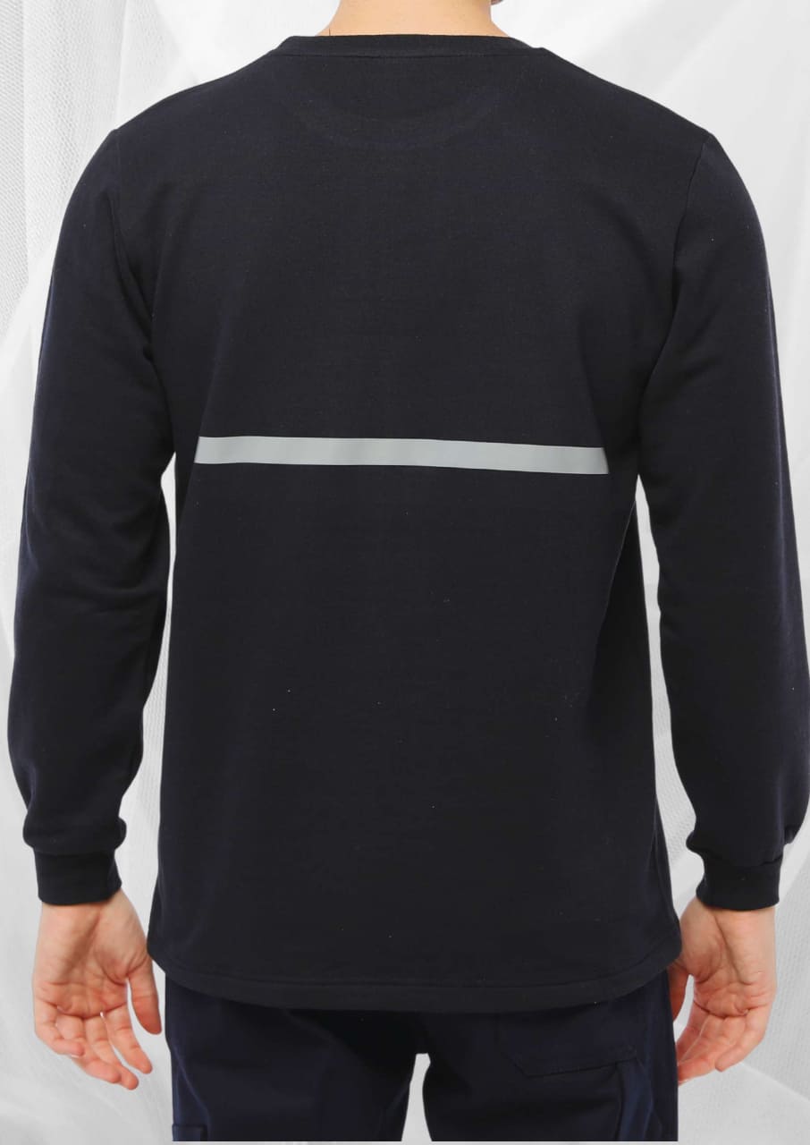 Bisiklet yaka %100 pamuk 2 iplik şardonlu kumaş, 260 gramajlı sardonlu kumaş ile üretilen sıfır yaka sweatshirt, yumuşak dokusu ve dayanıklı yapısı ile hem günlük kullanım hem de iş kıyafeti olarak idealdir. Nefes alabilir kumaşı sayesinde terleme yapmaz ve gün boyu rahatlık sağlar. Işıkta ve karanlıkta görünmenizda fayda sağlayacak yüksek görünürlüklü reflektör baskı uygulanmıştır.